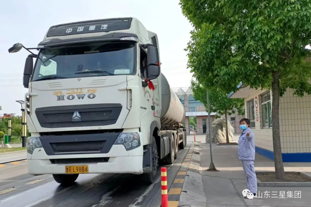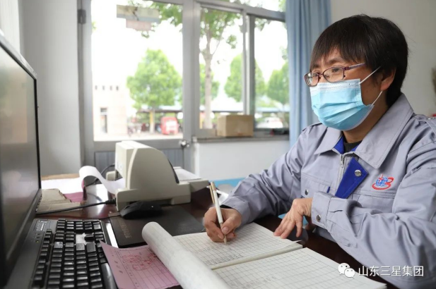 見到陳松松,已是第二天的下午。春暖陽光之下,寬闊廠區(qū)之間,五六平米的地磅房面南而座,正對山東三星玉米產(chǎn)業(yè)初加工事業(yè)部大門。陳松松梳一頭利落的短發(fā),架一副粉紫色全框眼鏡、著一身灰色工作服端坐其中,正忙著為入廠車輛過磅稱重、統(tǒng)計數(shù)據(jù),周身的質(zhì)樸與普通勞動者別無二致。唯有眼角的歲月、滿目的清光,暴露了她心中的堅持、執(zhí)著和嚴謹。
