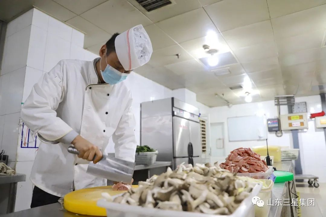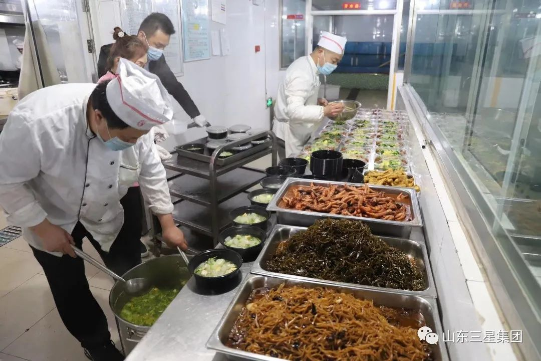 就像山東三星集團賓館廚房里,那翻滾在烹油中裹上焦黃、激出香氣的炸菜一樣,升騰著人間煙火氣,驅(qū)散了冬日的冷意。這次餐食,掌勺的大廚是賓館經(jīng)理趙龍。接連數(shù)日,從上午十點到下午四點,他都扎在廚房里,帶領(lǐng)賓館的兄弟姐妹們?yōu)闀円冠s工的干部員工備菜加餐、裝盒打包……在這不尋常的冬日,慰勞著工友們的胃,溫暖著同事們的心。