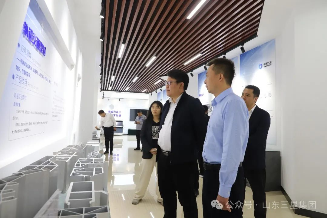 4月23日,山東省數字產業(yè)發(fā)展研究院執(zhí)行院長安章一行來山東三星集團調研,鄒平市工信局黨組成員、副局長菅寶樹,鄒平市聯(lián)通公司總經理茍斌參加活動,山東三星集團副總經理韓延庭接待來訪領導一行。