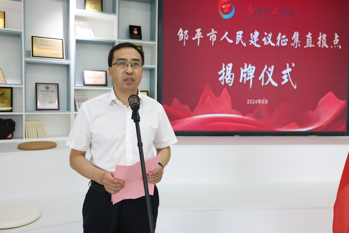 活動(dòng)現(xiàn)場(chǎng),宋明科、王明峰共同為人民建議征集直報(bào)點(diǎn)揭