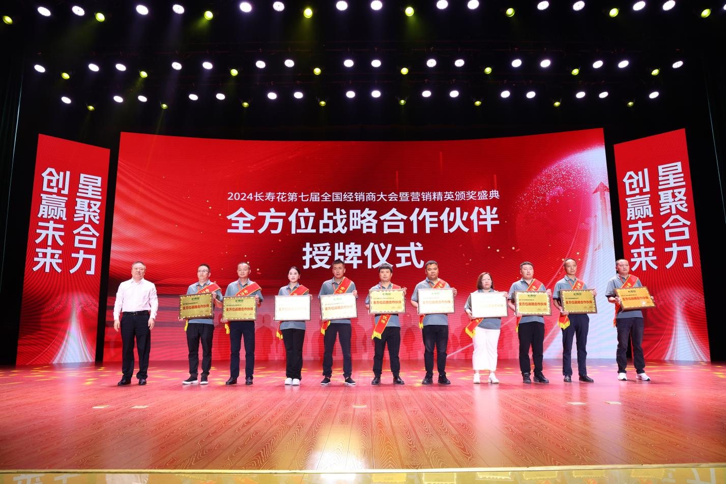 優(yōu)秀的合作必能走向長遠(yuǎn)的發(fā)展,會上,山東三星集團(tuán)副總經(jīng)理、長壽花食品股份有限公司營銷總監(jiān)任在順為全方位戰(zhàn)略合作伙伴單位授牌。