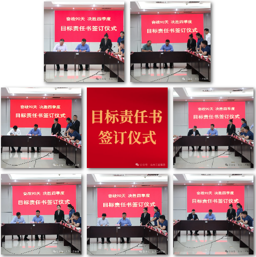 企管部代表集團公司與各單位執(zhí)行經(jīng)理分別簽訂目標(biāo)責(zé)任書,許下拓市場、搶訂單、抓生產(chǎn)、求突破的莊重承諾,吹響奮戰(zhàn)90天,決勝四季度的沖鋒號角。