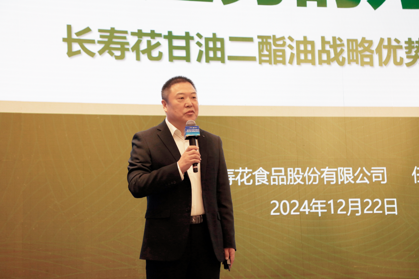 長(zhǎng)壽花食品股份有限公司副總經(jīng)理、營(yíng)銷總監(jiān)任在順做《趨勢(shì)的力量——長(zhǎng)壽花甘油二酯油戰(zhàn)略優(yōu)勢(shì)及發(fā)展愿景》主題分享