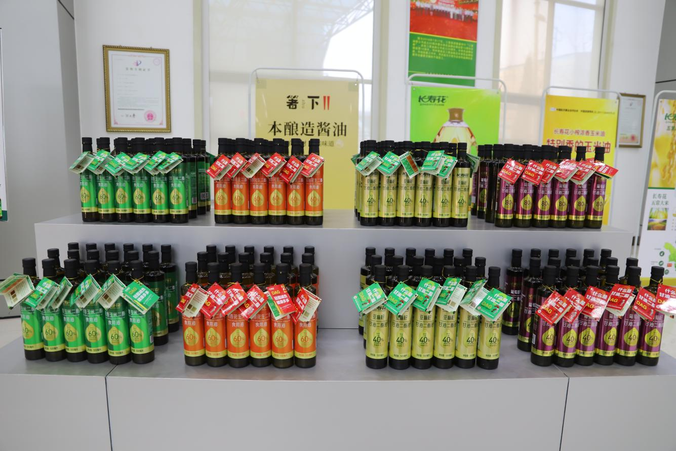長(zhǎng)壽花食品展臺(tái)前,由長(zhǎng)壽花二酯食用油、金胚玉米油、高谷維稻米油、濃香玉米油及調(diào)味品、糧食產(chǎn)品等構(gòu)成的綠色健康健康廚房展區(qū)吸引了眾多參展人員駐足咨詢。