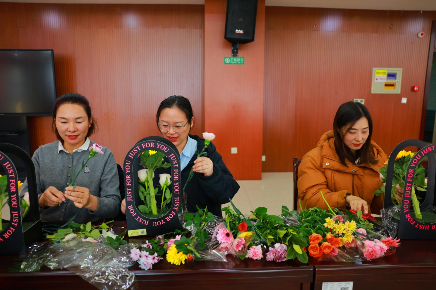 活動(dòng)現(xiàn)場(chǎng),專業(yè)花藝?yán)蠋煘榇蠹以敿?xì)講解了花卉知識(shí)、插花技巧和藝術(shù)構(gòu)圖。女員工們聽得津津有味,從花材的選擇與處理,到色彩搭配和造型設(shè)計(jì),不時(shí)提出問題,與花藝師積極互動(dòng)。