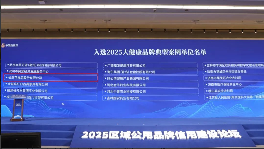 會(huì)上,長(zhǎng)壽花食品憑借創(chuàng)新發(fā)展路徑和健康特色屬性,被授予“2025大健康品牌典型案例”。