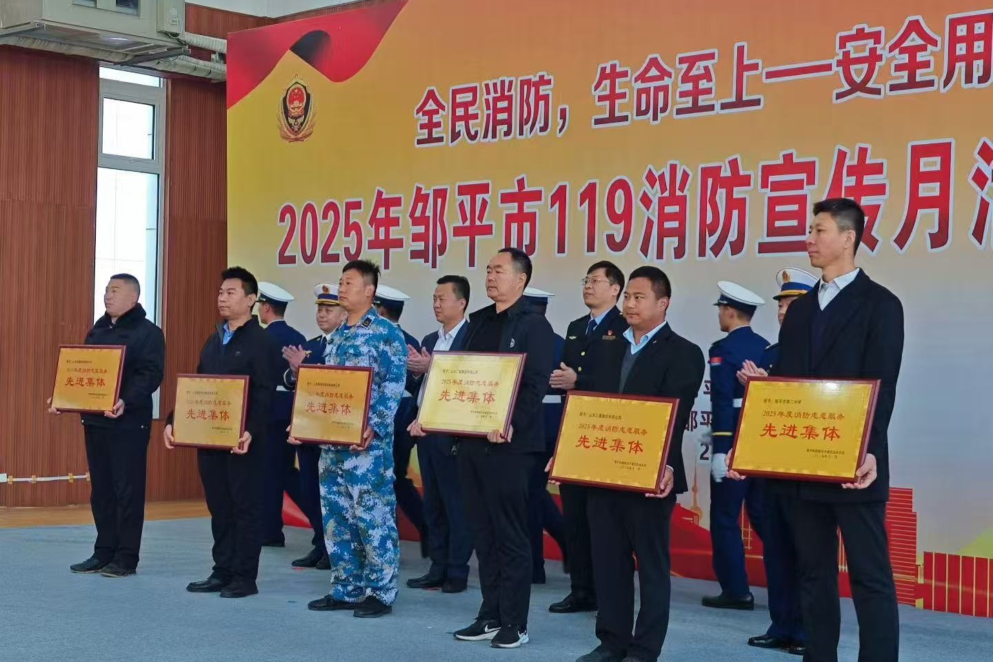 11月5日,2025年鄒平市119消防宣傳月活動(dòng)啟動(dòng)儀式在市消防大隊(duì)舉行。會(huì)上,憑借在消防志愿服務(wù)領(lǐng)域的扎實(shí)舉措和堅(jiān)實(shí)保障,山東三星集團(tuán)獲評(píng)2025年度消防志愿服務(wù)先進(jìn)集體。