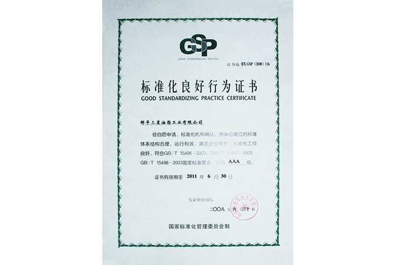 標準化良好行為證書