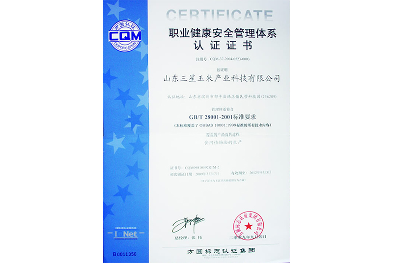 職業(yè)健康安全管理體系認證證書