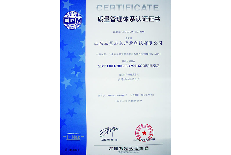 質(zhì)量管理體系認證證書